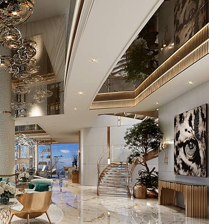DAMAC Bay by Cavalli is an awe-inspiring residential concept consisting of three magnificent towers in Dubai Harbour each with 42 floors. It seamlessly merges the realms of ultimate luxury and tranquil maritime beauty. The lavish 1, 2 and 3-bedroom apartments and 3 to 5-bedroom duplexes have been crafted to offer an enchanting lifestyle by the waterfront, providing panoramic views of both the ocean and the coastline. Tucked away in the heart of the exceptional waterfront district, Dubai Harbour, DAMAC Bay has found its home in a location that not only represents unrivalled opulence but also acts as a gateway to an energetic and diverse maritime adventure.