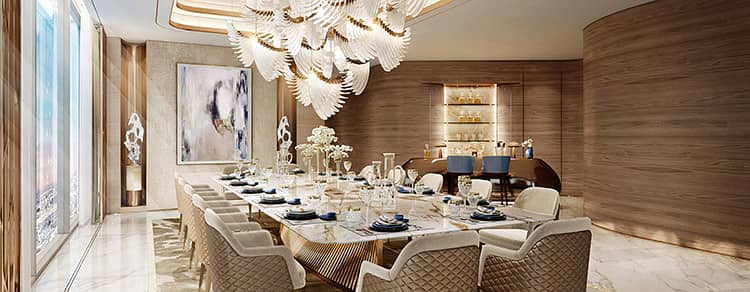 Situated in Sufouh Gardens, Fairmont Residences Dubai Skyline is a remarkable venture brought to life by the RSG Group. It features 2 and 3-bedroom flats and 4-bedroom Sky Mansion and Sky Palace residences. The award-winning interior designer Kristina Zanic has crafted the interiors drawing inspiration from desert landscape and flowing pattern to capture the essence of Dubai. The residential tower promises an exceptional lifestyle with breathtaking views of the sea set against the sparkling city skyline. It boasts separate entrances for the hotel and residences, enhanced by panoramic capsule lifts and amenities like a Fairmont spa, gym, meeting rooms, a rooftop observation deck and more.