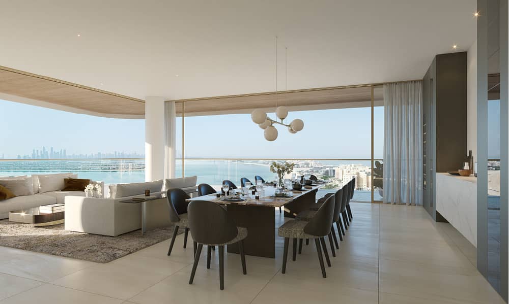 The Sky Mansions on the top floor of the Tower 3 are the epitome of luxury, furnished with Italian-style furnishings and decor from prestigious brands like FLEXFORM and Minotti, creating a refined ambiance. It is situated on the Crescent of Palm Jumeirah with an easy access to central city via Palm Jumeirah Road.